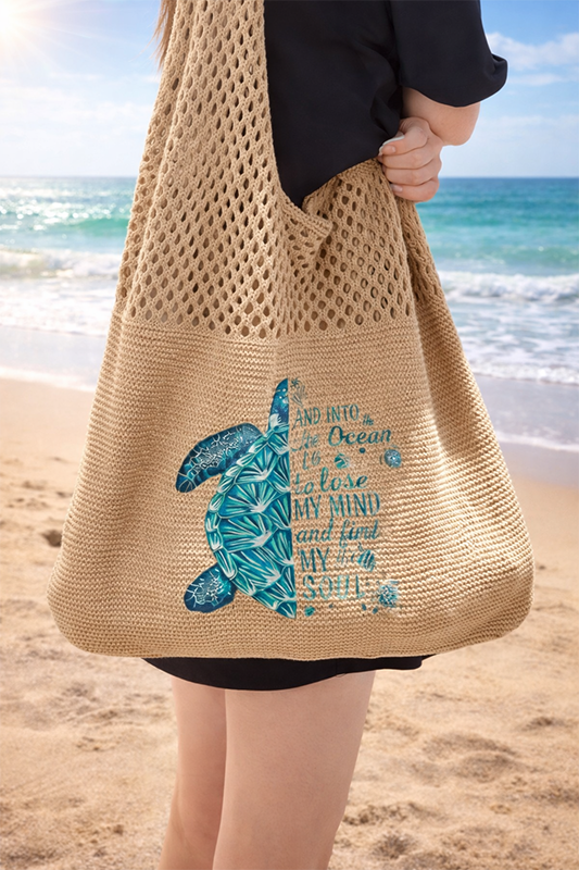Featuring a unique ocean-inspired turtle design, this bag blends natural tones with a trendy, relaxed summer vibe.